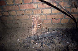 Gewölbestruktur mit Ausgang für Mannschaften - im Hintergrund bereits gestohlene Eisen- halterungen der Fensterverschlüsse |